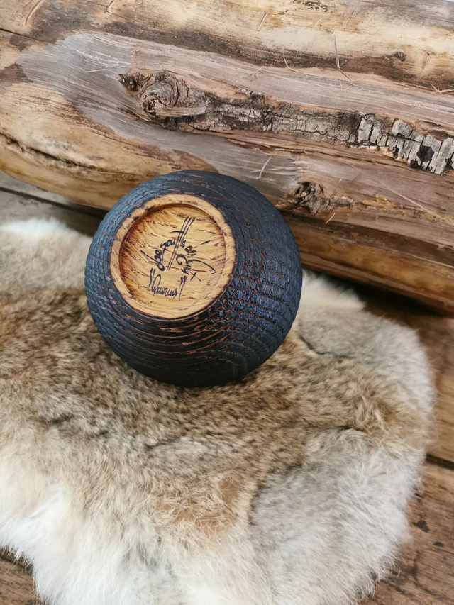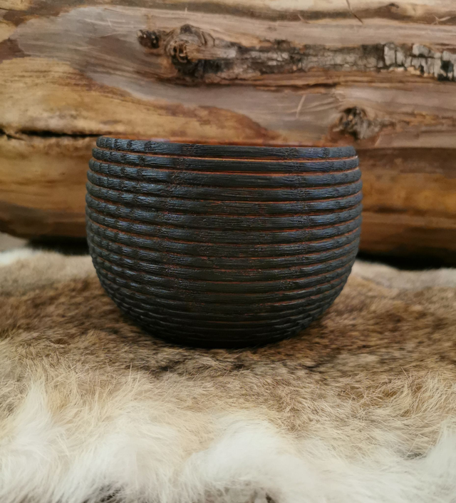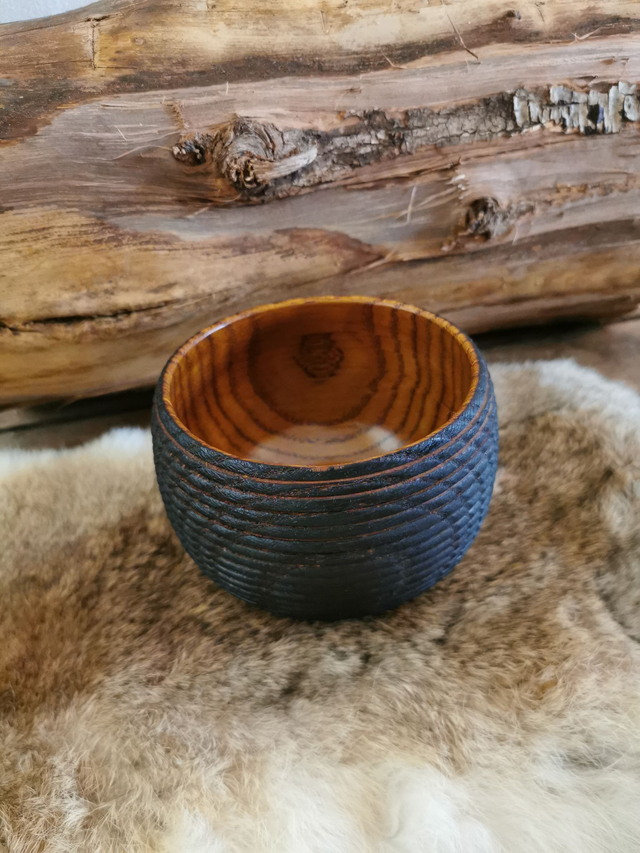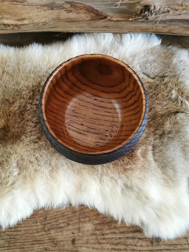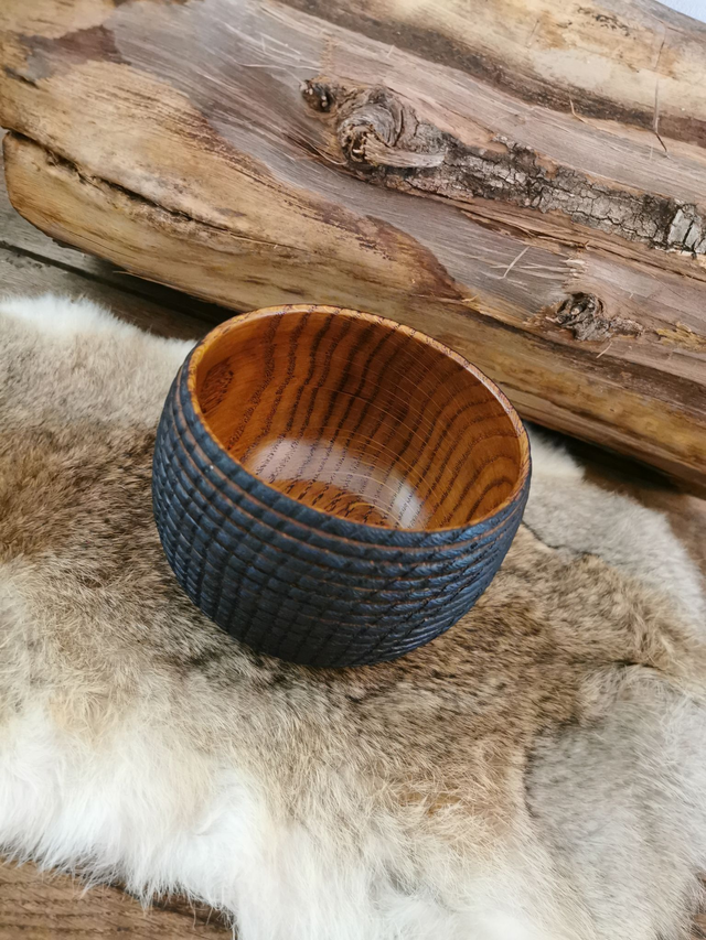 Bol en Chêne - Quercus, texturé à la gouge, brulé, puis brossé.